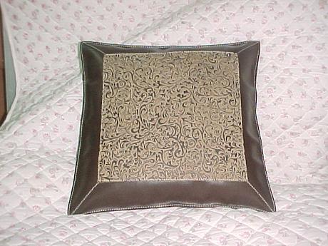 This taupe color cushion has brown border on its sides and leather is embossed in the center to give traditional as well as contemporary look.