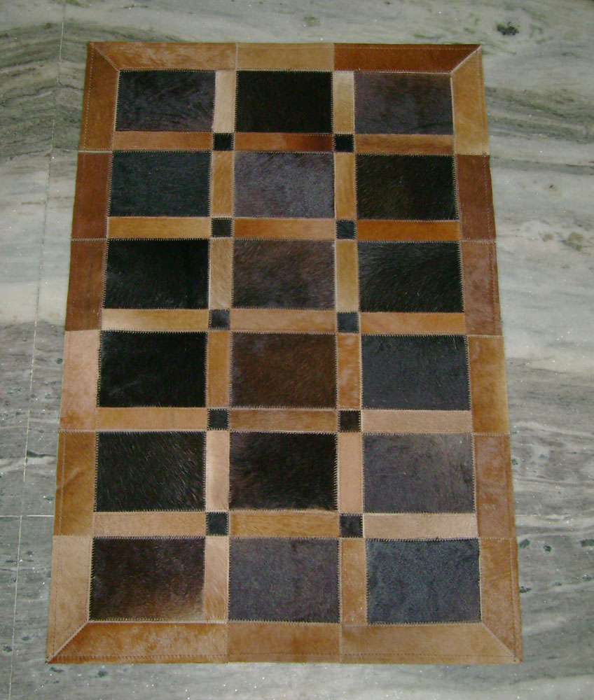 This brown color leather patch carpet is inspired by timeless designs crafted with the softest leather available.