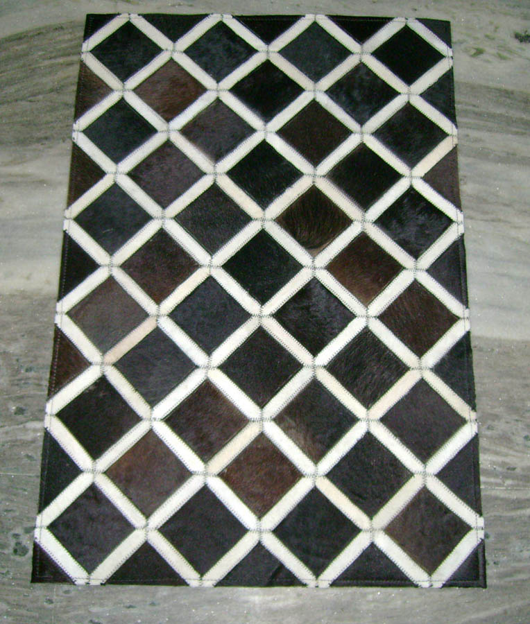 Satiate your wild side with this leather patch carpet. This black and white carpet will add a pop of color and the finishing touch to your décor.