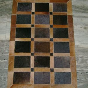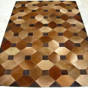 Add the feel of real leather to any room with this durable brown color leather carpet. Made of patched leather, this carpet makes sense ecologically, and aesthetically.