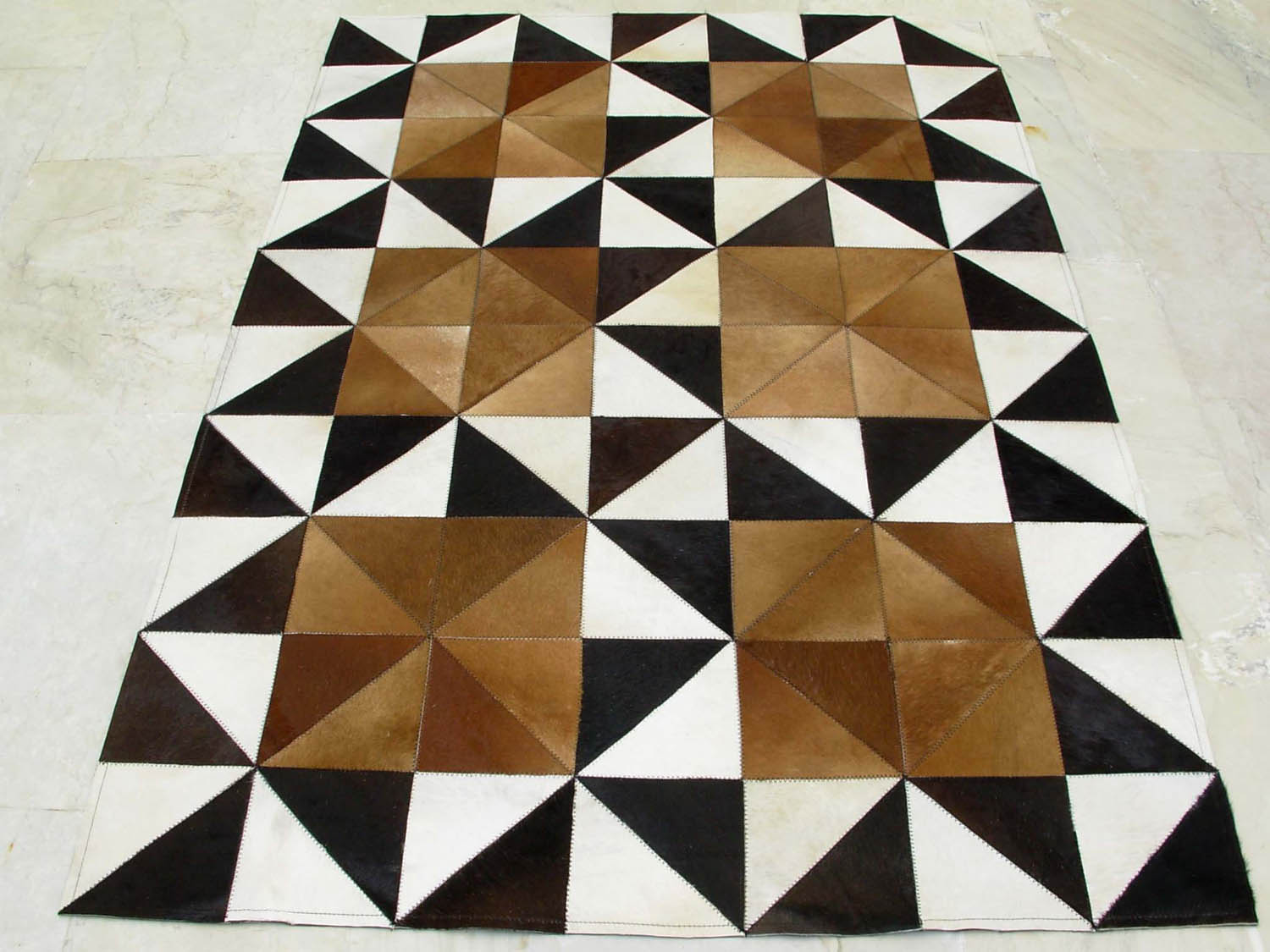 Impart a trendy look to your modern home flooring with the soft and plush feel of this white and brown leather patch carpet .