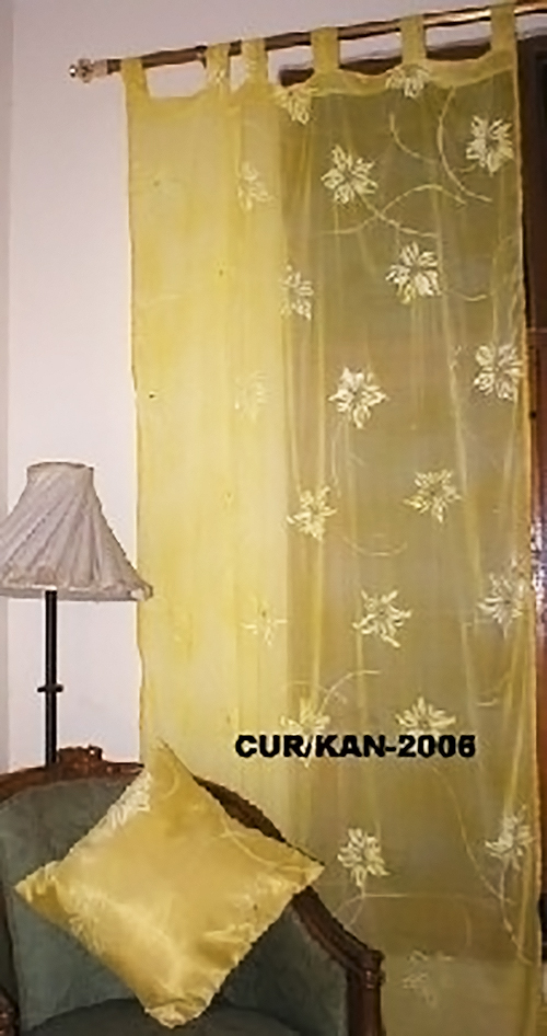 Enhance the look of any room with the yellow chiffon printed curtain. This hand printed curtain create a warm atmosphere in any space with beautiful light diffusion.