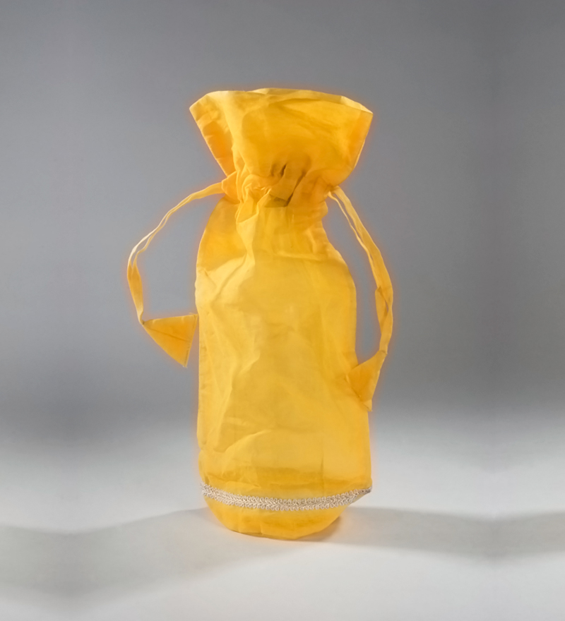 This simple yet elegant wine gift bag made in organdy is available in yellow color.