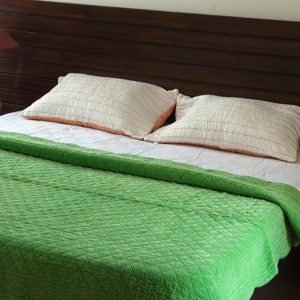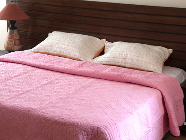Give romantic look to your bedroom with this lovely baby pink quilt. Made in cotton fabric, this quilt will give you warmth and is ideal to be used in A.C.