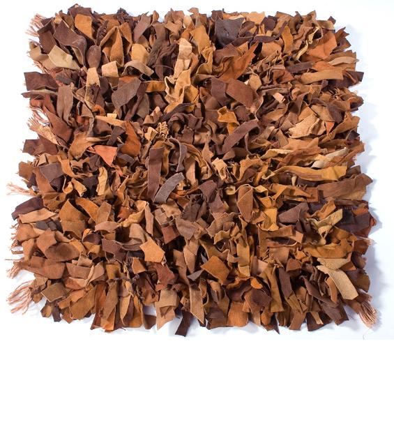 Give your room a chic update with this leather shag rug. Crafted of strips of hand-tied leather to provide softness and a distinctive look, this rug features a natural color palette that serves as a neutral background against any color scheme.