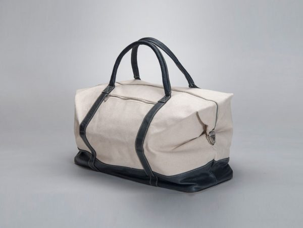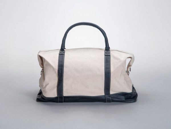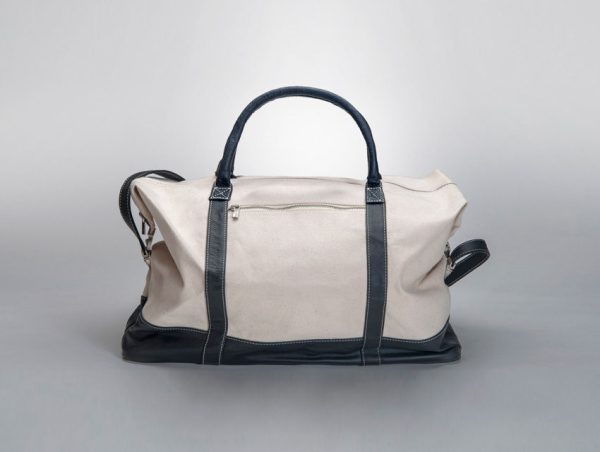 Elegant Leather and cotton travelling bag is specially crafted to suit all your travelling needs. This white color bag included a detachable matching top quality leather shoulder strap.