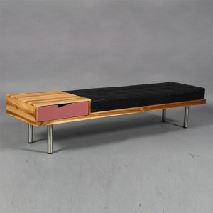 Bench with steel legs table and cushion finish by Second May