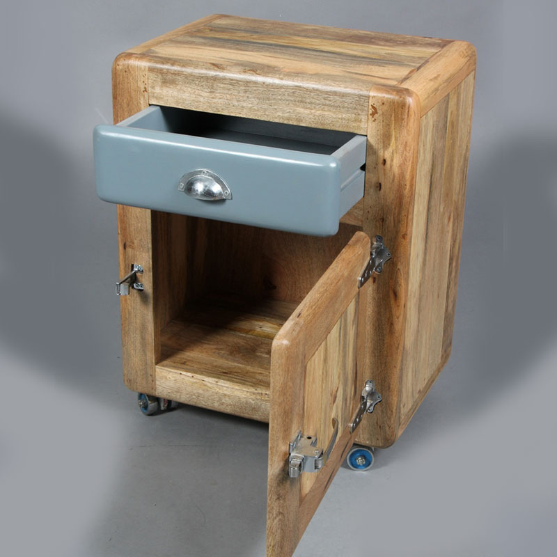 One Door and one drawer wooden Bed Side table with lock and wheal