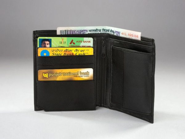 Protect your credit cards and identification with this bi-fold men’s wallet. The distressed leather style is offset with stitching along the outer edges, giving the wallet a handsome look that is perfect for everyday use